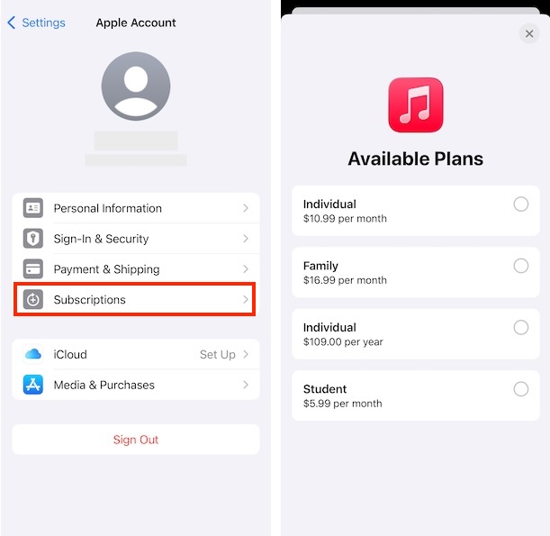 Change Apple Music plan on iPhone, iPad or iPod Touch
